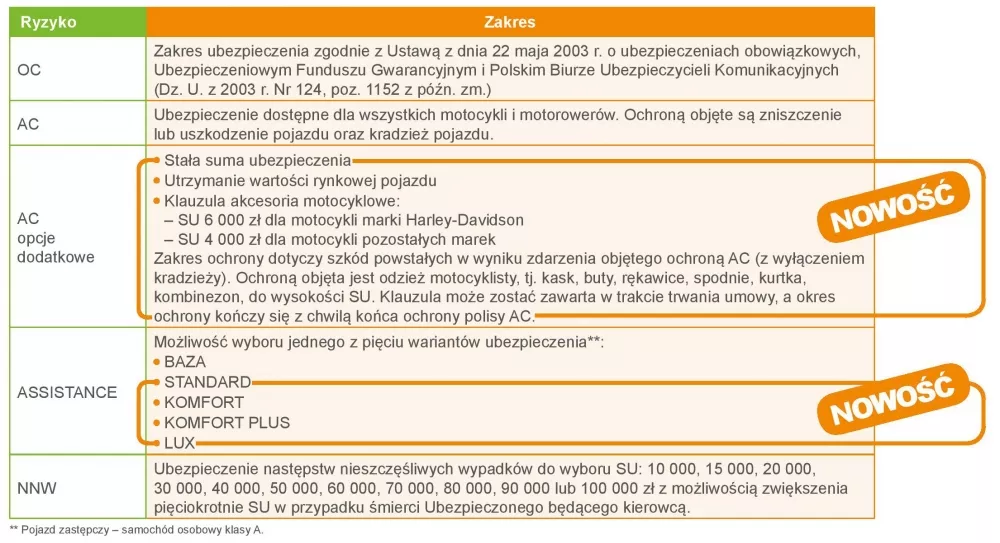 - Jest możliwość do wykupienia stała suma ubezpieczenia i utrzymanie sumy ubezpieczenia dla motocykli;